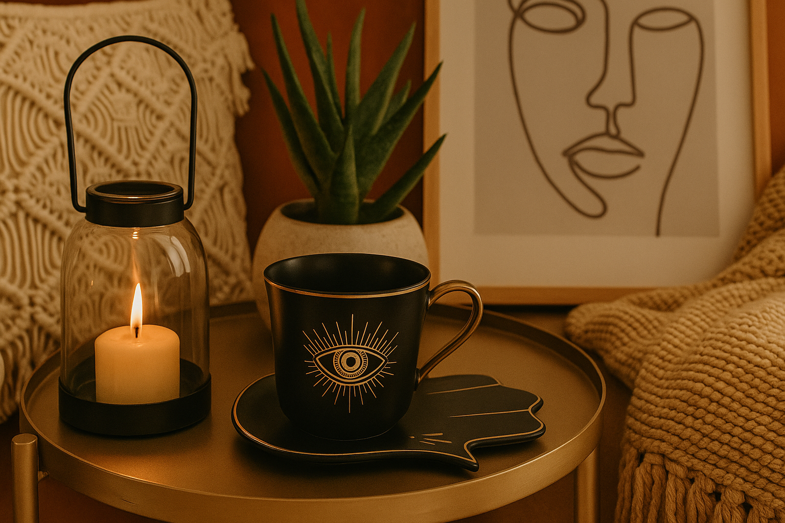 Luxury Evil Eye Cup for Coffee & Tea with Hamsa Hand Saucer Set - Multiple Colors