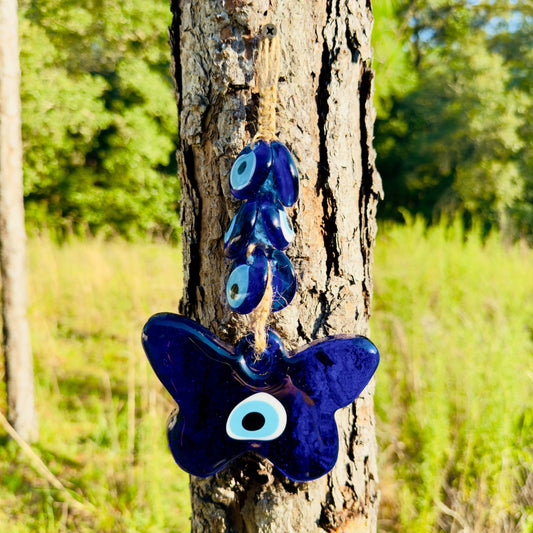 Wall Hanging Macrame Evil Eye Nazar Boncuk Mal De Ojo, Modern Boho Style Home Decor -- Butterfly Amulet with 6 Evil Eyes, Housewarming GiftPrix habituel $35Prix habituelPrix unitaire / par-