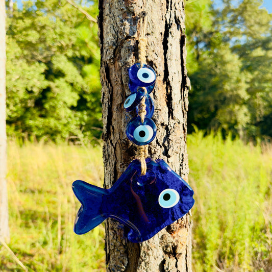 Wall Hanging Macrame Evil Eye Nazar Boncuk Mal De Ojo, Modern Boho Style Home Decor -- Fish Amulet with 6 Evil Eyes, Housewarming GiftPrix habituel $35Prix habituelPrix unitaire / par-