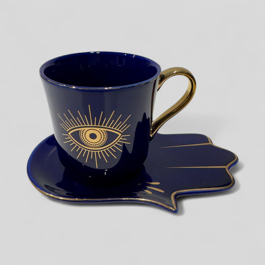 Luxury Evil Eye Cup for Coffee & Tea with Hamsa Hand Saucer Set - Multiple Colors