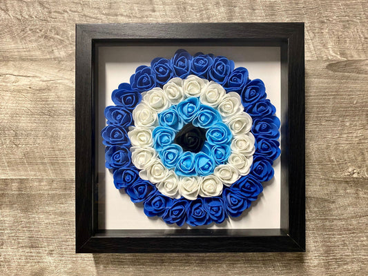 Evil Eye Wall Hanging, House Protection, Home Decor 4 Pack -- 9 » x 9 » Handmade Evil Eye Nazar Boncuk Mal De Ojo Rose Flower Shadowbox