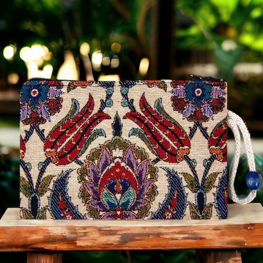 Authentique Kilim Tissu Ottoman Red Tulips Design Zipper Clutch Purse, Tapis turc, Pochette, Porte-monnaie, Portefeuille, Petit rangementPrix habituel $20Prix habituelPrix unitaire / par-