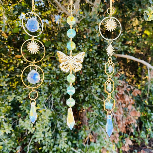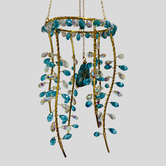 Hanging Gold Metal Suncatcher with Blue and Clear Prismatic Beads & Natural StonePrix habituel $25Prix habituelPrix unitaire / par-