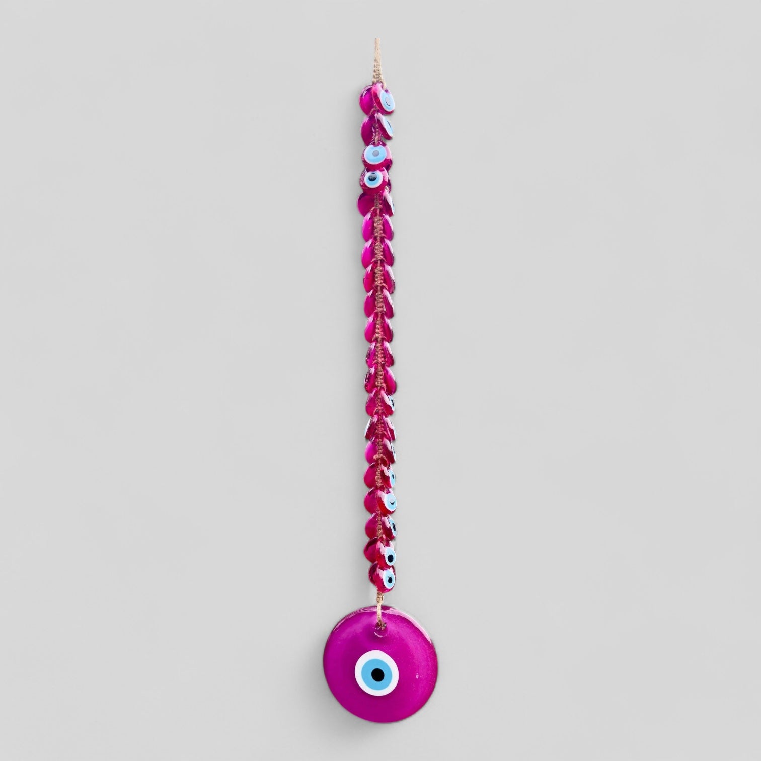 41 Piece Evil Eye Wall Hanging Decor | Evil Eye Beads | Macrame Evil Eye Decor | All Pink Evil Eye Beads House Protection | Nazar Boncuk