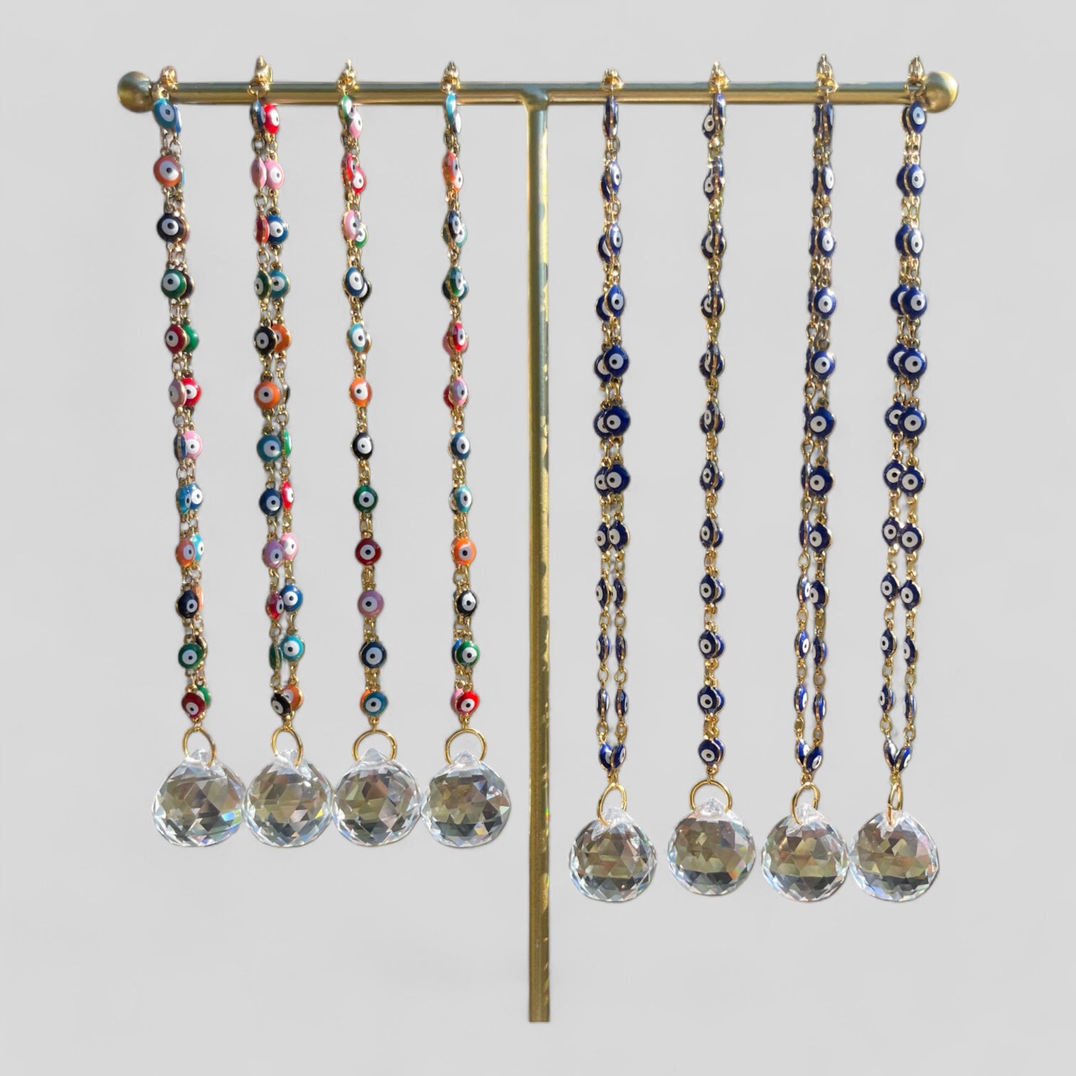 Il s’agit d’un attrape-soleil absolument magnifique et fait à la main qui peut être utilisé dans votre voiture ou votre maison. Il comporte une chaîne en or ou en argent composée de petits yeux maléfiques. Vous pouvez choisir le multicolore ou le bleu ! Parfait pour votre véhicule, votre maison ou comme cadeau très spécial !