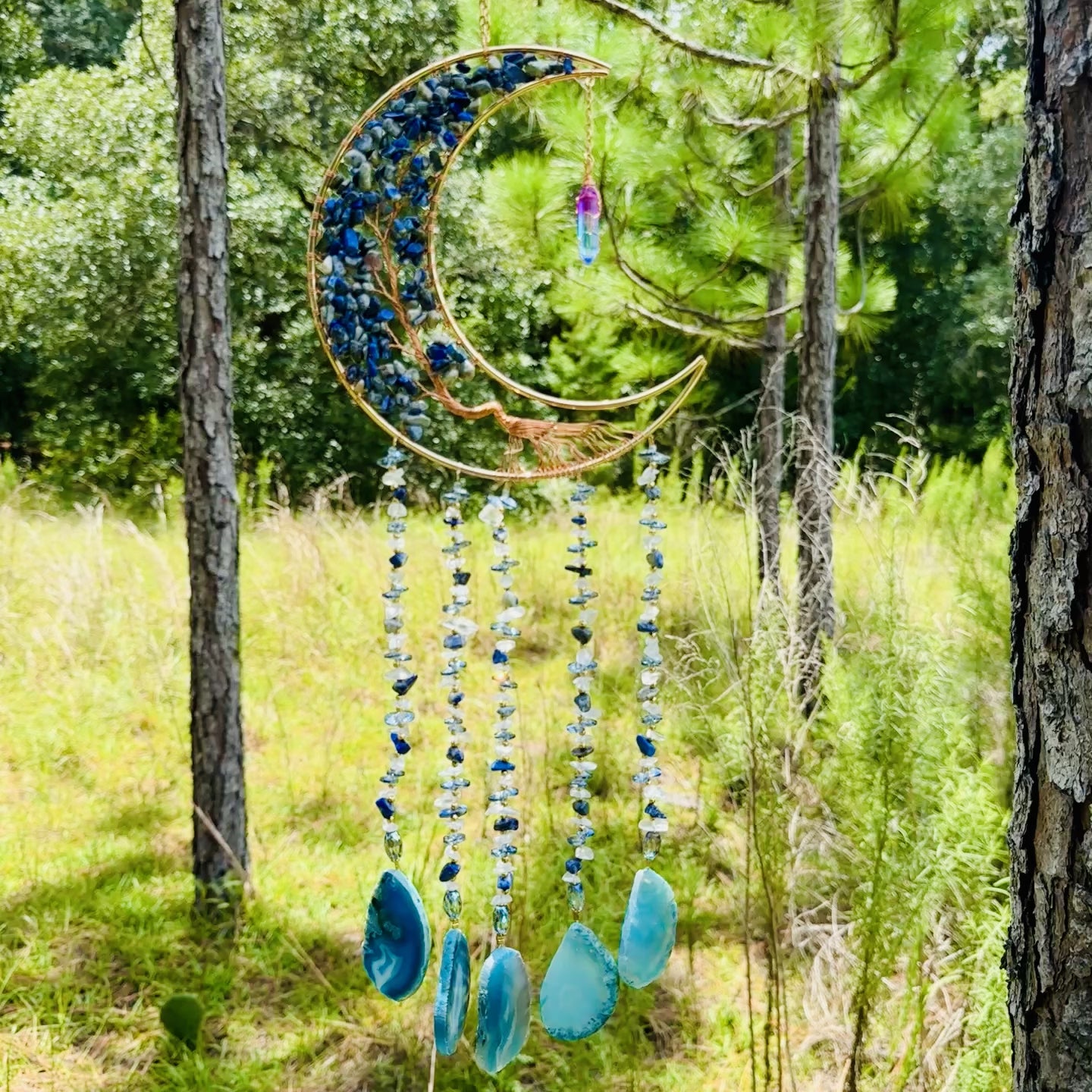 Matériau : croissant de lune en métal, pierres d'aventurine naturelles, breloques et perles suspendues