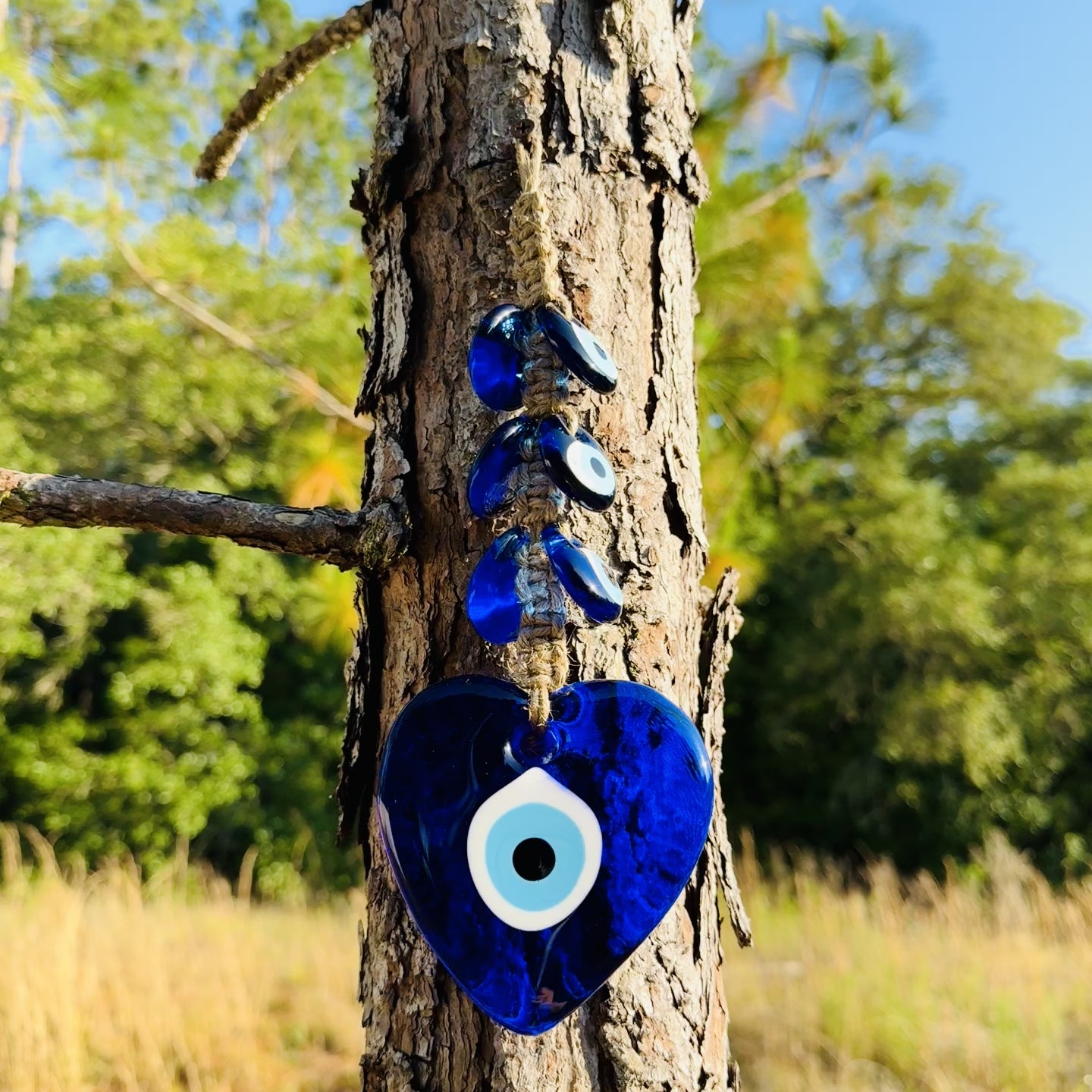 Fabriqué à la main avec une attention méticuleuse aux détails, notre mauvais œil mural comprend 6 petits yeux maléfiques et une grande breloque bleue contre le mauvais œil, en forme de cœur. La teinte bleue vibrante symbolise la protection spirituelle et éloigne les énergies négatives, apportant harmonie et positivité à votre environnement.